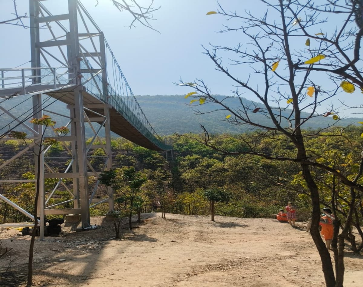 इसी परिसर में एक सस्पेंशन ब्रिज भी है। ग्लास ब्रिज से कोई 150/200 मीटर की दूरी पर। यह ब्रिज लकड़ी का बना है। जो चलने पर हिलता है। इसका हिलना ही एक रोमांच देता है। परिसर में एडवेंचर के लिए जिप लाइन, जिप साईकिल, राइफल शूटिंग, आर्चरी, रॉक क्लाइंबिंग जैसे खेल भी हैं। यह सब बिहार के राजगीर में है। किसी से कहो तो लोग यकीन नहीं करते। पहले तो मानते नहीं है। बहुत कहने पर अगर मान भी लें तो कहते हैं कि अच्छी स्थिति में नहीं होगी। लेकिन यह सब सुचारू है, सुरक्षित है।